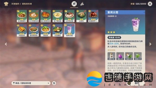 日常跑狗粮中,还能在料理制作—冒险类料理中烹饪出带有体力减免的食物,这边以下几种食物都是带有体力减免的,但是个人是不太推荐的,可以通过配队最大化减少找狗粮所需时间,而且每天吃食物的话累计下来消耗材料也是挺多的。