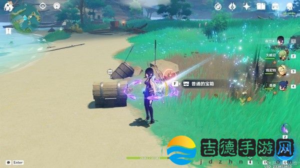 找到雷樱枝条,召唤雷种子,往地图的西北方向走,触摸引雷剑,出现武士并清理,获得宝箱三。