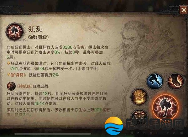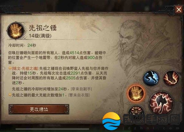 召唤先祖可以加快单刷boss的速度和吸收仇恨,也是一个远程控制技能,你可以把怪群留在地震带上多吃伤害,或者晕2秒进去放地震更加安全。放完先祖召唤可以马上放狂暴之怒,因为先祖是范围攻击,+50的急速在晕的那2秒可以造成很可观的伤害,有把握自己也可以进去砍砍,狂乱叠满后会有冲击波范围伤害(主武器)。