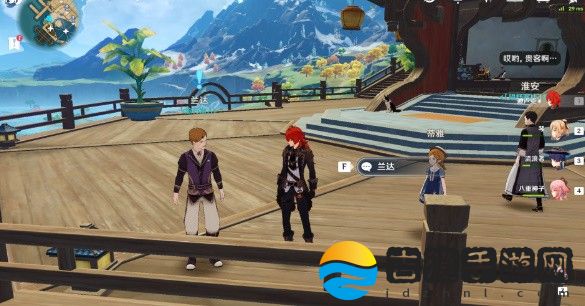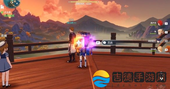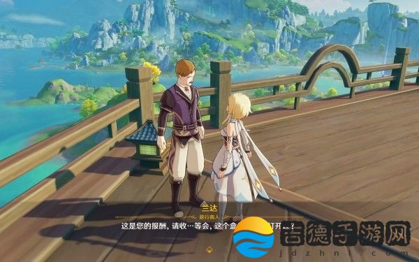 1、在望舒客栈观景平台上,与枫丹商人兰达对话接取任务;