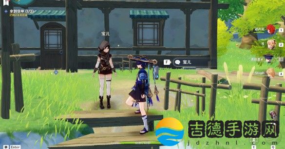 4、前往任务指引地点,在山上房子前与盗宝团宝儿对话,交付3颗夜泊石即可拿到货单;