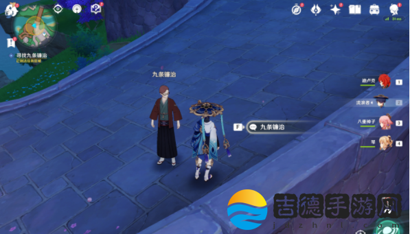第二步:在天领奉行府前的桥上与九条镰治对话。