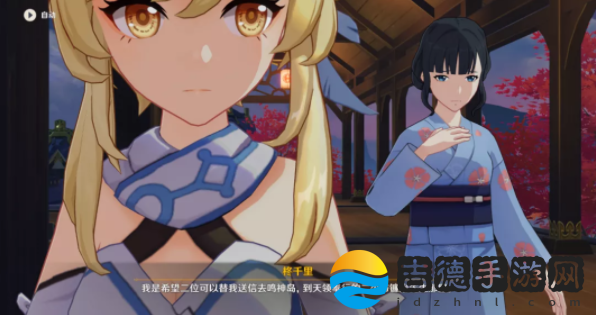 第四步:返回离岛,跟随指引来到柊家长廊前与柊千里对话,并将九条镰治的信交给她,对话结束即可完成任务。
