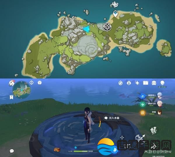 我们首先来到此处,通过水占镜回到现在的危危岛(图中是过去的样子,如果你已经在现在的危危岛上就不用调了)