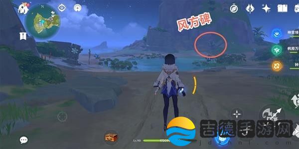 然后往身后走,可以看到一个风方碑,触发方碑,顺着风场上去。