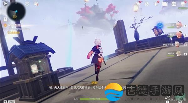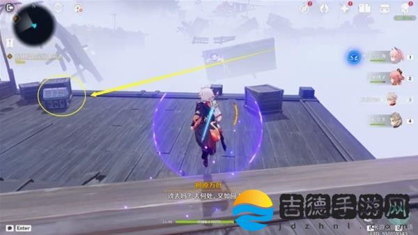 (4)拿了海螺,到下个平台(触发喊话”眼狩令“),可以看到右侧柱子旁边有一个普通的宝箱2,之后先走左侧风场飞过去,那边也有一个普通宝箱和一个牌子。