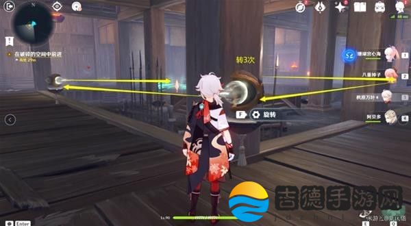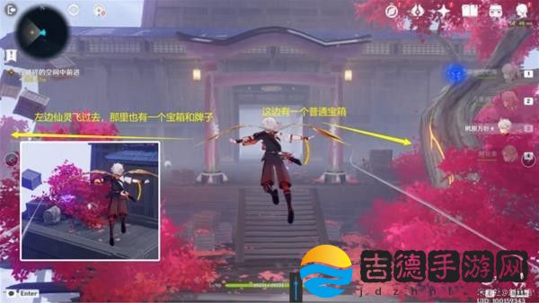 进入秘境(1)这里不用转机关,直接发射,解锁牌子,拾取放到旁边的神龛中,出现风场,飞到下一个场地。