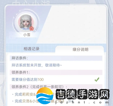4、最后我们看完剧情并达到领养条件就可以领养小雪。