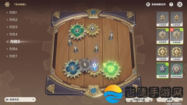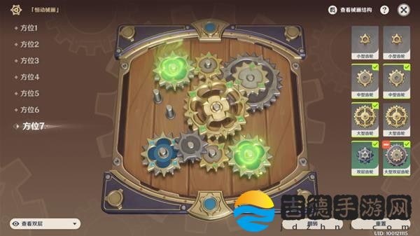 2.不同层的齿轮之间无法直接相互接合,我们可以通过切换查看上、下层来判断如何组合齿轮使其运作。