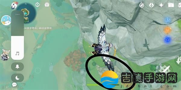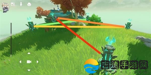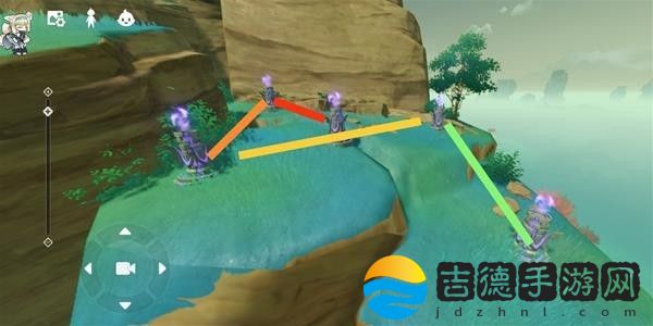 解好之后回到景盆位置切换石山风格,左稻妻右蒙德,切换后直接去蒙德风格的山顶,就算摸一下雷灵也只是在墙壁上蹦来蹦去告诉你解密顺序