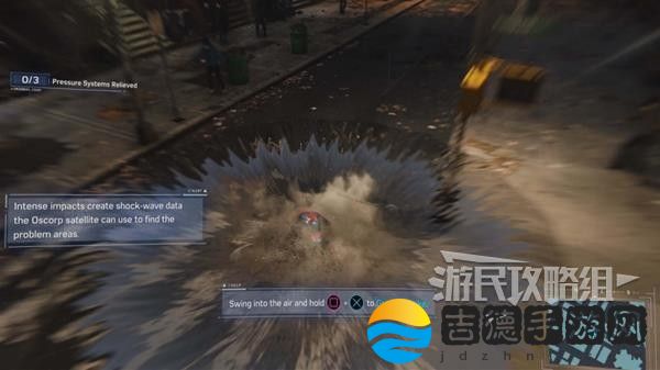 开始任务后,使用「落地重击」砸到地面上,让卫星找到有问题的区域,之后前往地图上的红**域,再次使用「落地重击」即可释放地下的压力,累计解决3次压力问题即可完成任务。