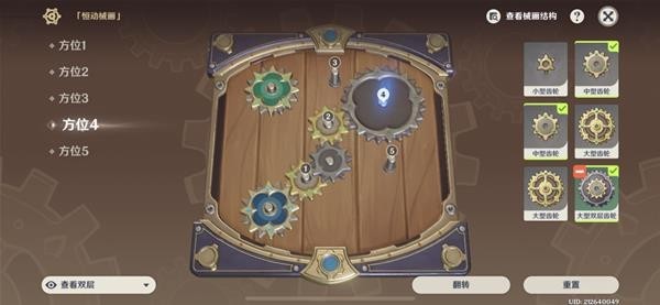 方位4,大型双层齿轮,此时状态如图所示按一下右下方翻转。