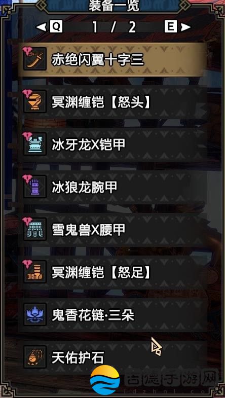武器方面,按照龙,水,雷,冰,火的顺序,我选用的武器为天彗太,泥翁太,雷属性衍生太(鬼神斩破刀),冰属性衍生太(六花垂冰丸,考虑收益应该是冰狼太更好),熔翁太。这会导致一定伤害可能达不到极限,但我也不是竞速玩家,所以这里没有做太细致的推敲。