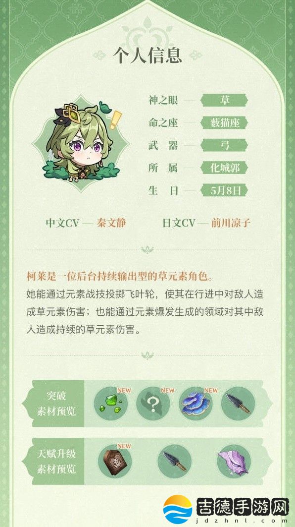 《原神》3.0版本将会新增多名角色,其中柯莱的技能和天赋是怎样的呢,想要了解的玩家请看下面“飞翔的丘丘人”带来的《原神》柯莱天赋技能前瞻,希望能够帮助大家。