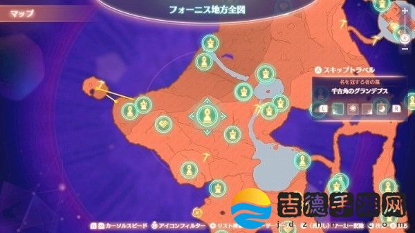 千古角的古岚戴普斯(Lv95)位置在佛尼斯地区全域地图-雷贝高原-杜玛之颚(地标「称霸者崖顶~黄樟树」旁边)。