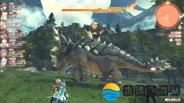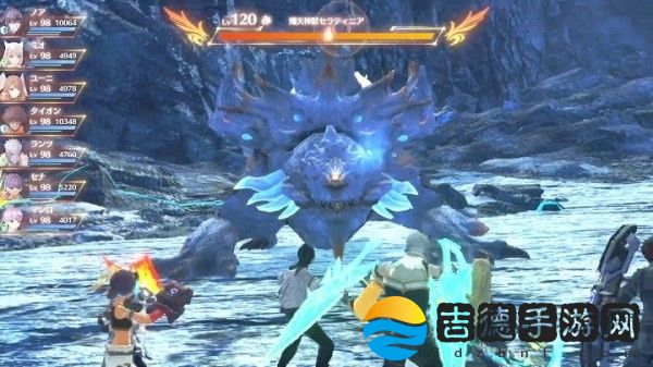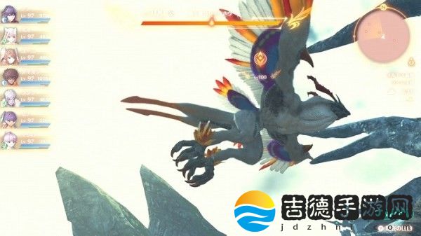 此怪物特征是防御值较高,吐息会在前方范围内造成中毒、冰冻、破防等异常状态,考虑到前方范围攻击较多、破防会中断攻击等原因,防卫者选择回避类会更加稳妥一些。此外,可以手动操控防卫者调整站位以防止治疗者仇恨太高OT。在连锁攻击中选择圣奈的指令更容易打出伤害。