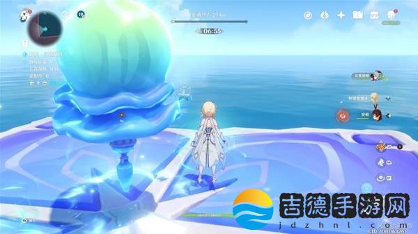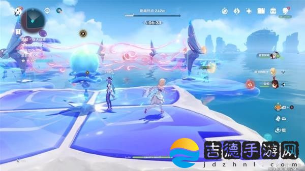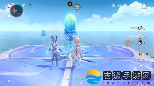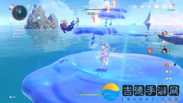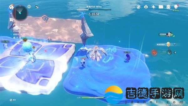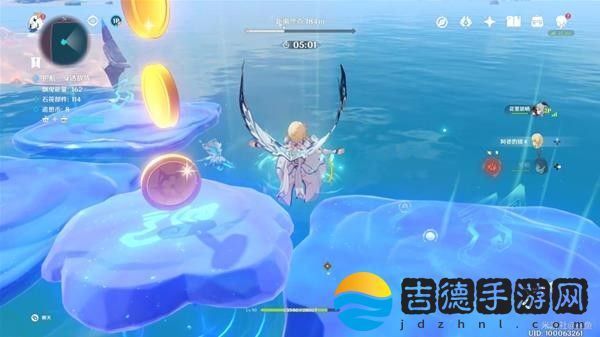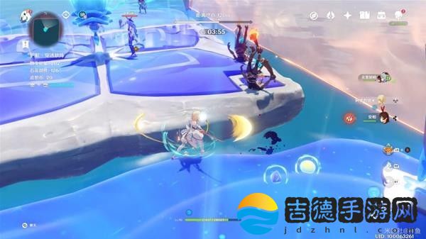 和之前一样,将丘丘人击入水中即可,不用打败他。石筏靠近平台,丘丘人浮现,石筏远离平台,丘丘人消失。