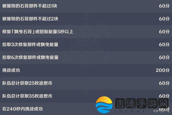 4.修复「飘曳石筏」或「回复能量」5秒以上 60分。