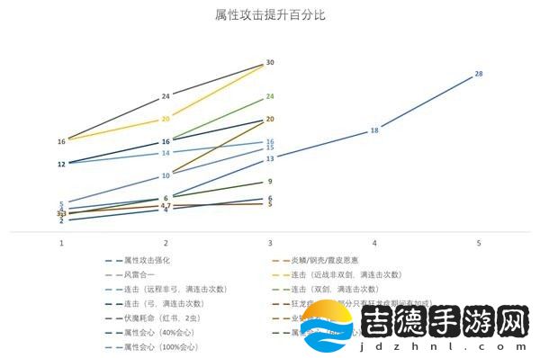 连击近战武器除了双剑都是一级10攻8属,二级12攻10属,三级15攻15属。