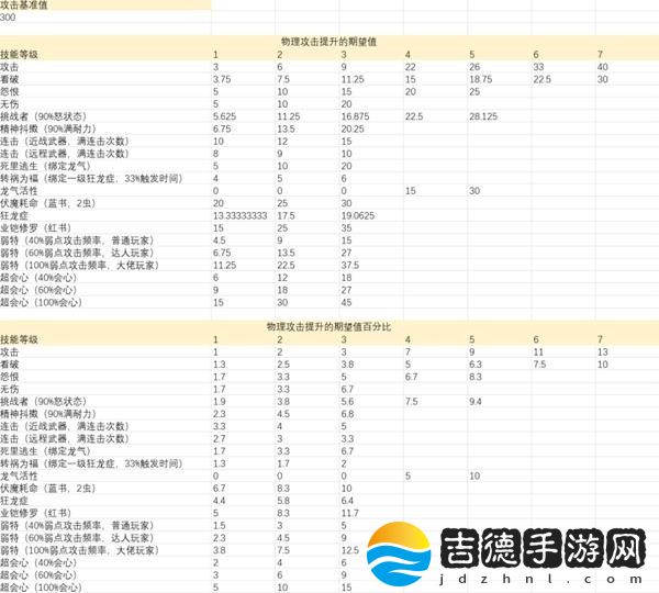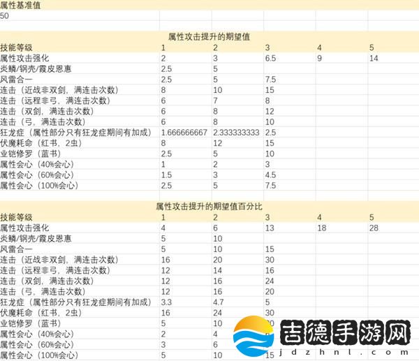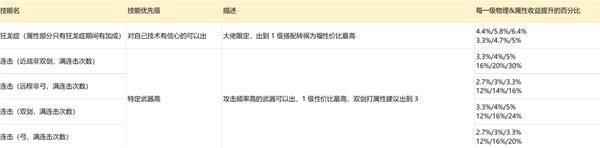 结论物理输出技能收益和性价比设定武器的基准值是300点攻击,50点属性,然后计算使用对应技能的期望值。将期望值和基准值作差后,再比上基准值,就得到了该技能收益提升的比率了。