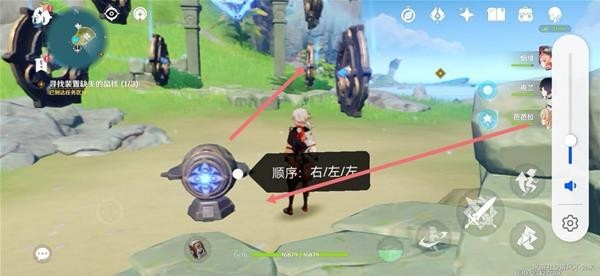 先来到第一处,按照下图顺序调整机关旋转方向即可拿到第一个晶核