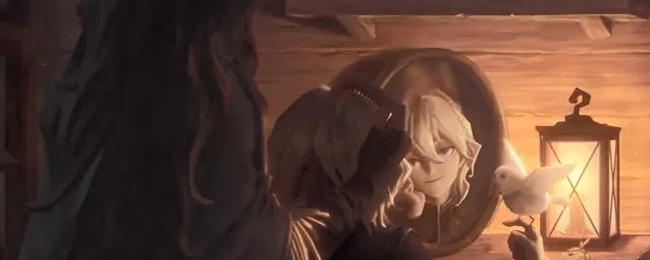 但无论如何他终究是来晚了,母亲的人性死在黎明前。他将母亲带回暴风雪森林深处的家,像曾经每一晚母亲安抚他入梦一样轻声细语:“睡吧,母亲,我来守夜。别怕,不会再有活人靠近你。”