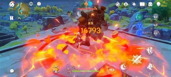 再下落攻击,结合刚刚的知识点 此时触发了火扩散,减火抗增火伤 ,此后小宝残留火元素。