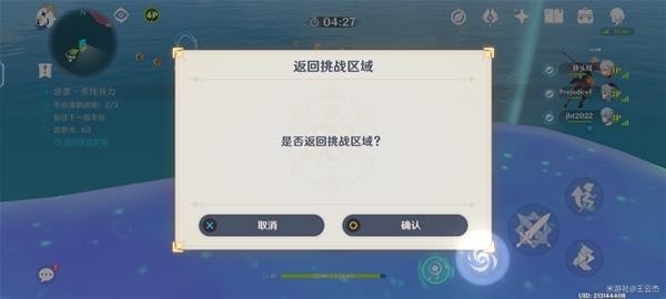 点击返回挑战区域即可快速传送到期望区域并获得船只,上面俩截图是我截图太慢了,实际花费时间约4秒,建议每个阶段都传送到船,避免抢船大战。