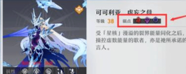 根据下图可可利亚弱点来进行选择配队,可可利亚的弱点有火、雷、量子。因此配队最好选择火、雷、量子这三个属性的角色配队。推荐新手使用希尔、虎克等角色。