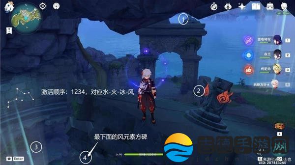 按图中顺序激活遗迹里的元素方碑,顺序一:水-火-冰-风
