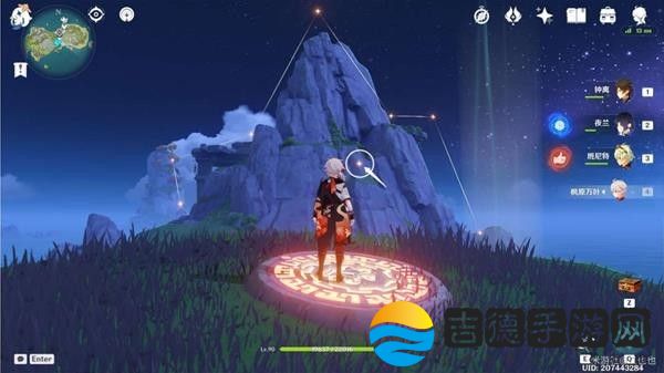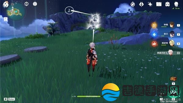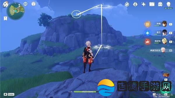 切换岩主/钟离/安柏,激活压力机关,通过背后的风场飞往图中孤独的星光凝核