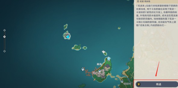 活动位置:活动位置位于离岛西边的岛屿上,在完成活动任务荒泷极意堂堂斗虫大试合!后,可直接点开活动图标进行传送。