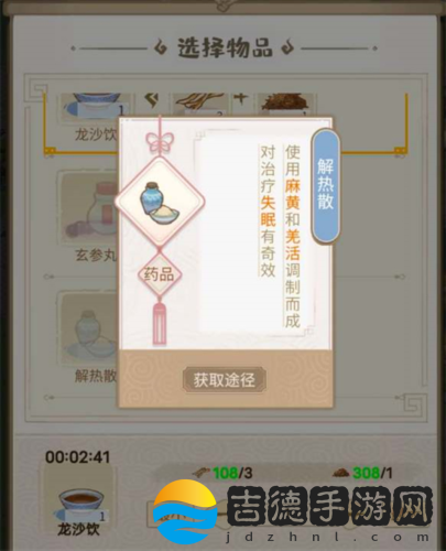 2、游戏中可以治疗的药物是解热散,需要通过制作得到。