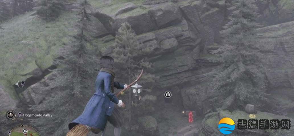 4、第四个宝藏秘库位置在东霍格莫德谷地的飞路之焰南边,不需要解密,直接互动获取;