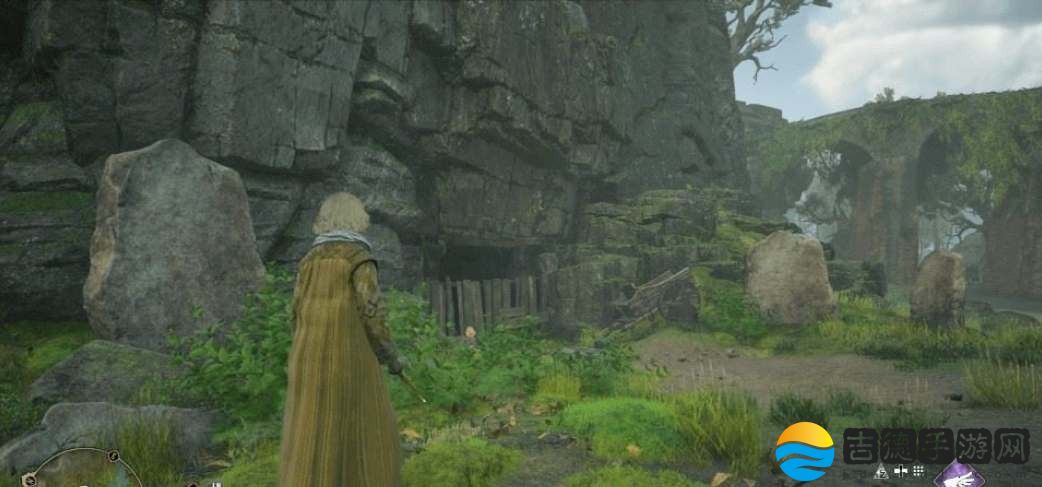 4、第四个宝藏秘库位置在森·巴卡尔塔下方的木桥附近,需要先打碎木板,使用漂浮咒拿起地上的石块,调整方向后放入墙上的凹槽;