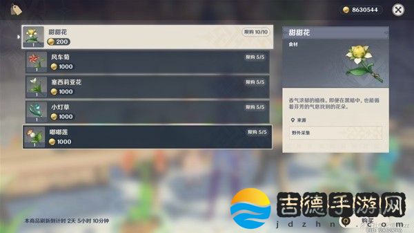 我们还可以在蒙德城的NPC芙萝拉处购买到5朵嘟嘟莲,虽然可能需要花一些小小的摩拉,可能比较适合一些懒癌发作的旅行者。