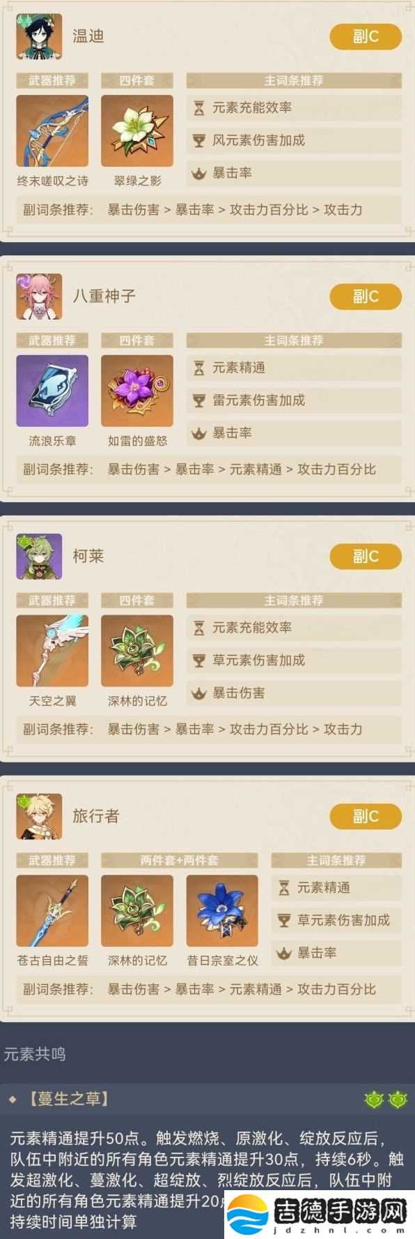 《原神》中草系是3.0版本新加入的属性,温迪在搭配草系角色的时候有什么好的队友可以选择呢,下面请看“风伤幽冥”带来的《原神》温迪蔓激化流配队参考,希望能够帮助大家。