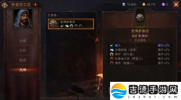 进入商店后在左边选择洗炼,中间选择要洗炼的护身符,点右下的洗炼