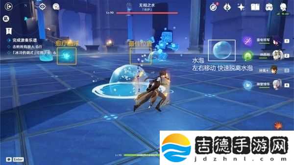 技能躲避:开始挑战,直接前往最佳位置输出即可(触碰愈疗晶球即可);