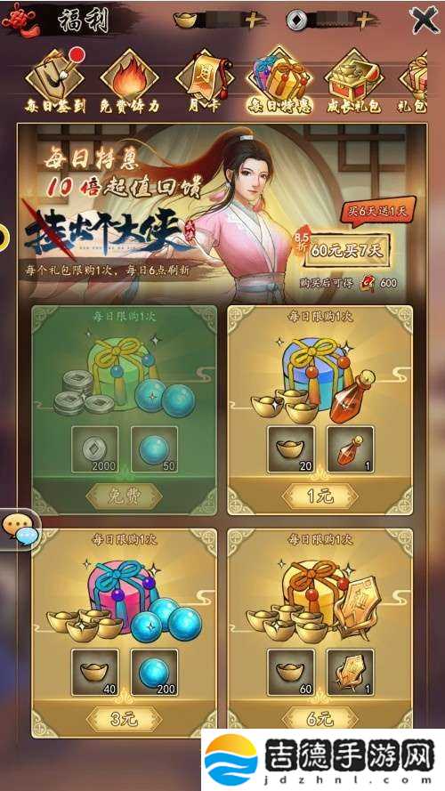 再去福利里面把60元买7天的每日特惠秒了。每天可领一个高抽和体力药水。超值