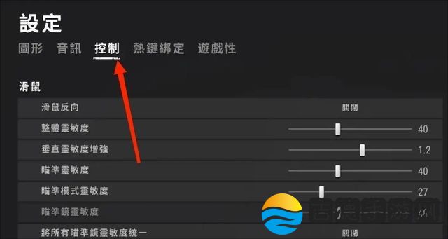 点击界面右上角的“设置”,进入设置界面,在设置界面点击“控制”功能,我们接下来灵敏度的调控都将在这里进行设置
