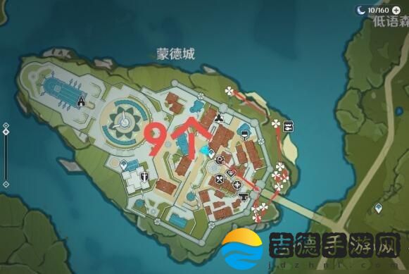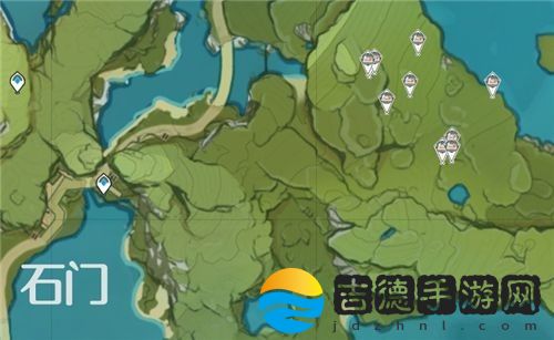 1、第一处位置在蒙德德城门口,这里有9个刷新点。