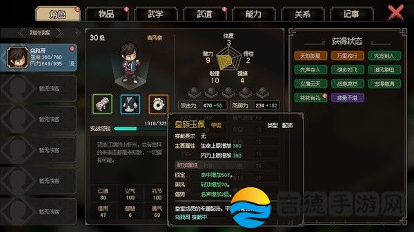 《大侠立志传》中的皇族玉佩是一件橙色饰品,可以大幅提升角色的生命与内力上限。下面请看由“嗨呦菌”带来的《大侠立志传》EA版开局获取皇族玉佩教程,一起来看看吧。