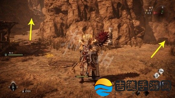 从藏有旌旗和宝箱的屋子里出来,往后方的山上看,能发现高坡上有一个牙旗点。从左侧的山道绕上去就能到达。