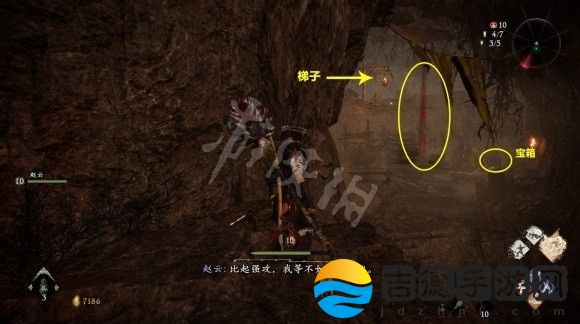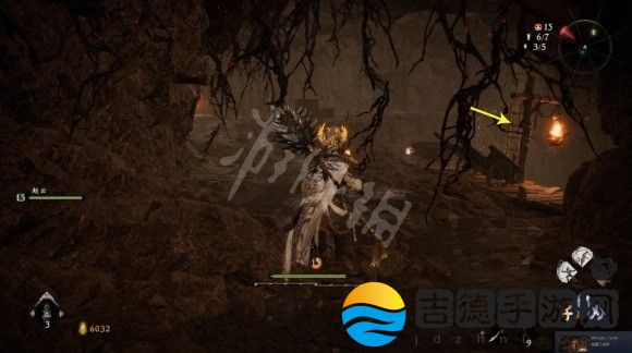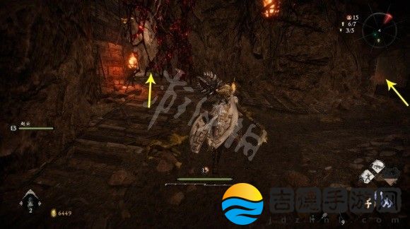 洞里还有个两个房间一个里面有拾取物,另一间外面被藤须挡住里面是个旌旗点,同样需要从其他地方绕过来,暂时不用管。