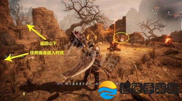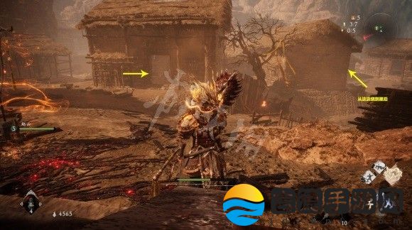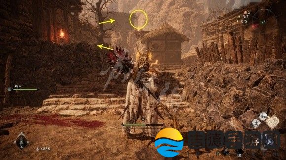 进入村庄这里没有固定的行动路线,玩家可以自由探索。以下会列出重要的几个宝箱以及牙旗、旌旗位置。另外,探索时推荐沿着房顶走,视野更开阔容易观察周围的状况。