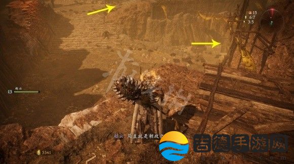开完大门上的旌旗继续沿着道路往前走,上台阶。先从左边走立牙旗。注意牙旗前有两个黄巾军,可以射箭干掉小的那个,之后和赵云一起围殴剩下的黄巾军。