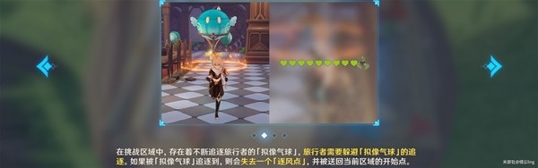 区域中会有【拟像气球】追逐,被触碰到会被送回当前区域起点,并扣一个血量,血量共10格。