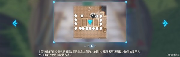 左上角小地图可看见【风花球】与【拟像气球】标识,可调整地图大小。