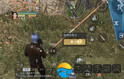 拿到藏宝图之后来到坐标点的位置,就在一根树旁的旗子,开始挖掘,获得宝藏。